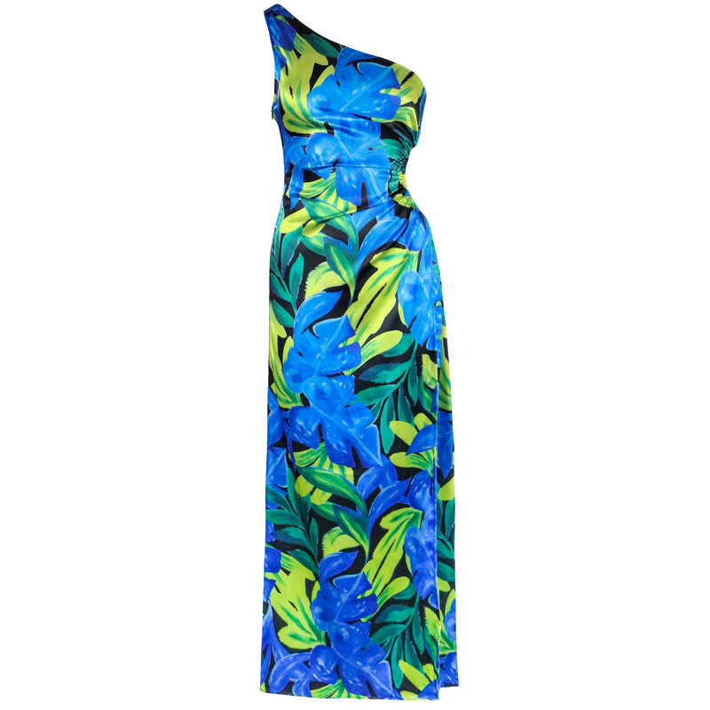 PRINT LOVE! Hoe fantastisch is deze nieuwe Natasha jurk in prachtige zomerse print. De jurk heeft een one shoulder fit met cut out in de taille. De maxi lengte met split maakt de jurk helemaal af.... Lees meer