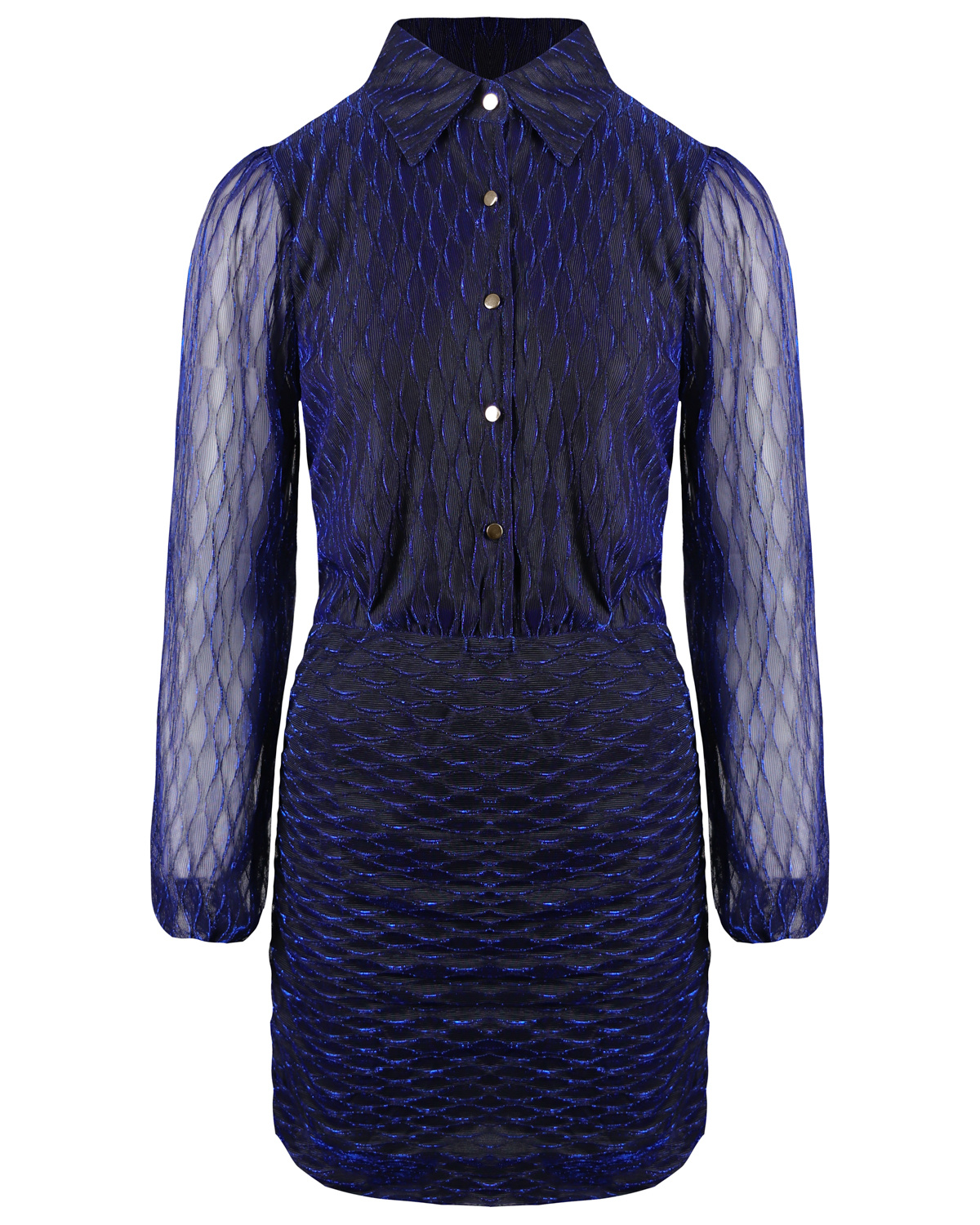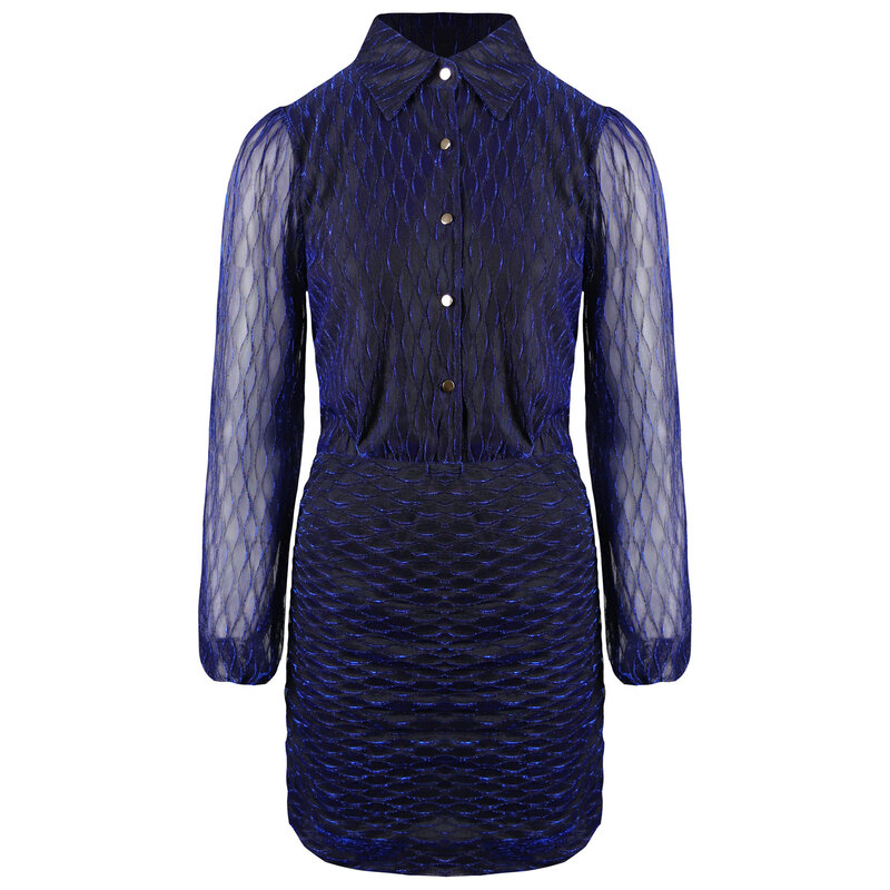 SPARKLE DETAIL! Deze nieuwe jurk is perfect voor feestje. De Nicole jurk is van een stretchy materiaal met lurex detail. De jurk heeft doorschijnen mouwen, gouden knoopjes een een blouse kraag.... Lees meer