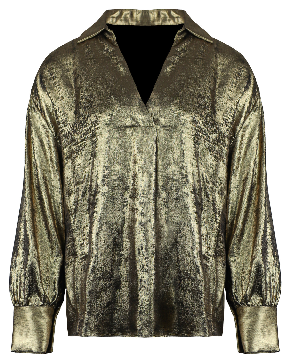 METALLIC LOVE! Deze prachtige Noelle blouse kan je perfect combineren met de Annie broek! De blouse heeft een simpele v-hals en soepelvallende fit.... Lees meer