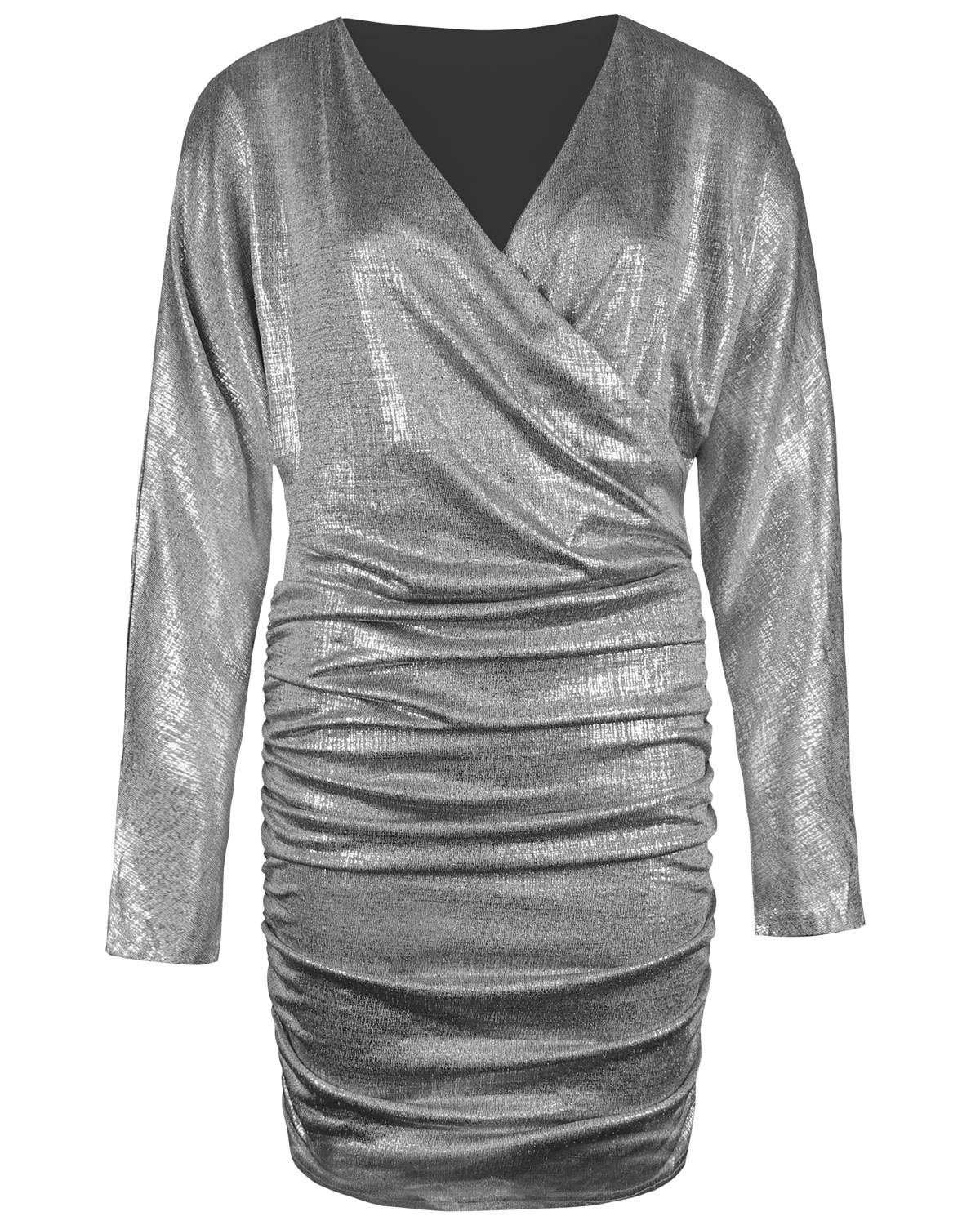 PARTY MUSTHAVE! De Octavia jurk is gemaakt van een stretchy metallic stof. De jurk heeft een v-hals gecombineerd met een geplooid effect.... Lees meer