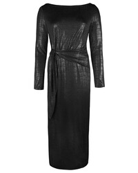 PARTY MUSTHAVE! De Opal jurk is gemaakt van een stretchy metallic stof. De jurk heeft een boot hals die ook off shoulder gedragen kan worden gecombineerd met een knoop detail in de taille.