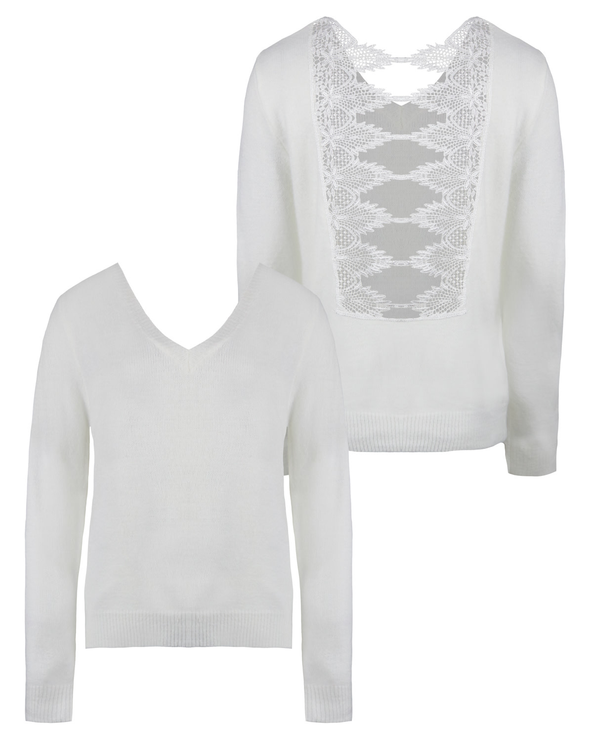JAIMY Open back crochet detail sweater white
