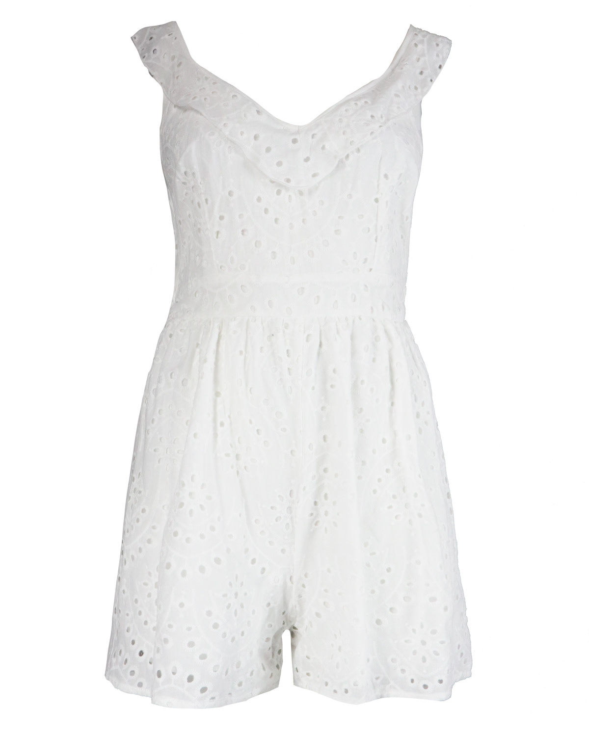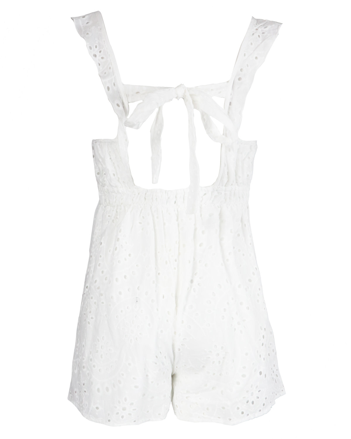 Open back crochet playsuit white