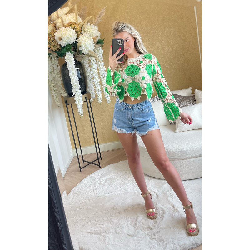 CROCHET LOVE! Deze Pacha top is toch prachtig. De top is gemaakt met een gehaakt patroon hierdoor heeft hij allemaal open stukjes waardoor hij mooi gedragen kan worden met een effen bh of een topje eronder.... Lees meer
