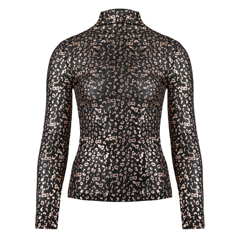 LEOPARD PRINT! Hoe geweldig is deze nieuwe party top?! De top is van een stretch stof met een metallic luipaard print. De top heeft lange mouwen en een colletje.