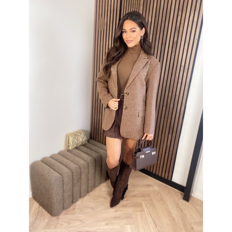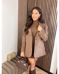 Pied de poule boyfriend blazer marron