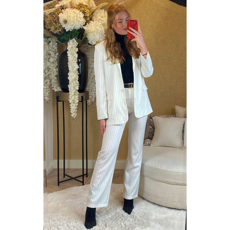 TREND ALERT! De krijtstreep is terug van weg geweest! Deze oversized blazer mag dan ook niet ontbreken in jouw garderobe. Combineer jij hem met de bijpassende broek?