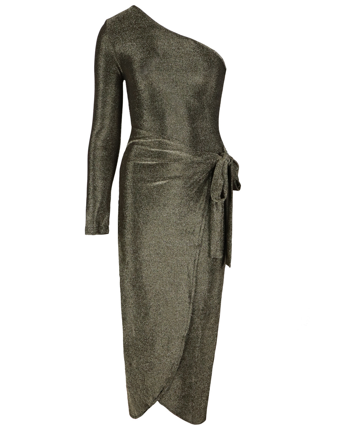 SPARKLES! De Raina jurk is gemaakt van een heerlijke stretchy glitter stof. Het one shoulder effect gecombineerd met de overslag rok geeft hem een sexy uitstraling.... Lees meer