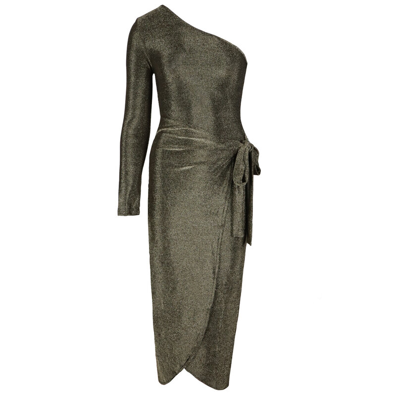 SPARKLES! De Raina jurk is gemaakt van een heerlijke stretchy glitter stof. Het one shoulder effect gecombineerd met de overslag rok geeft hem een sexy uitstraling.... Lees meer