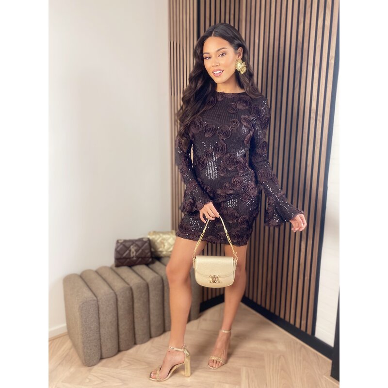 JAIMY Rose open back sequin dress chocolate