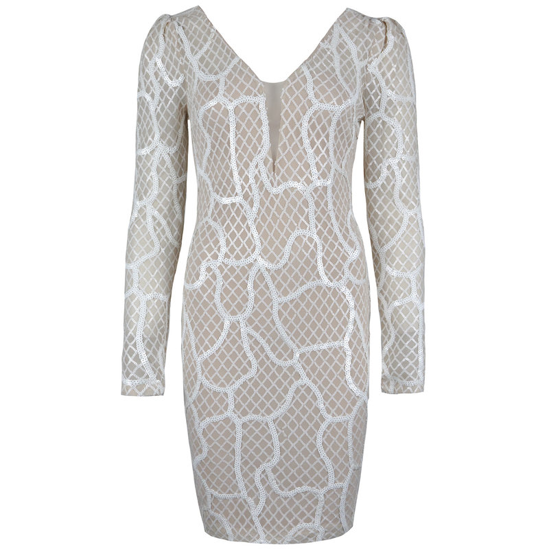 SEQUIN LOVER! Deze jurk is echt geweldig voor een feestje! De sequins zijn in een prachtig organisch patroon aangebracht. Bij de borst zit een mesh detail voor een sexy touch.... Lees meer