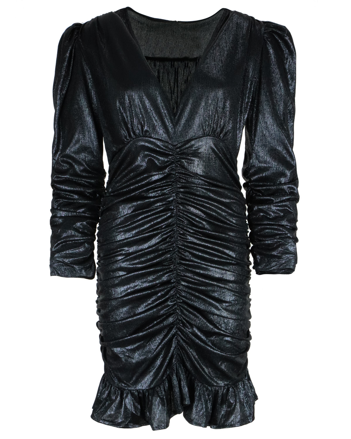 RUFFLE DETAIL! Deze jurk in metallic stof is een echte showstopper! Het ruched effect in de rok en bij de armen zorgen ervoor dat de jurk mooi aansluit. Aan de onderkant zit nog een leuk ruffle detail.... Lees meer