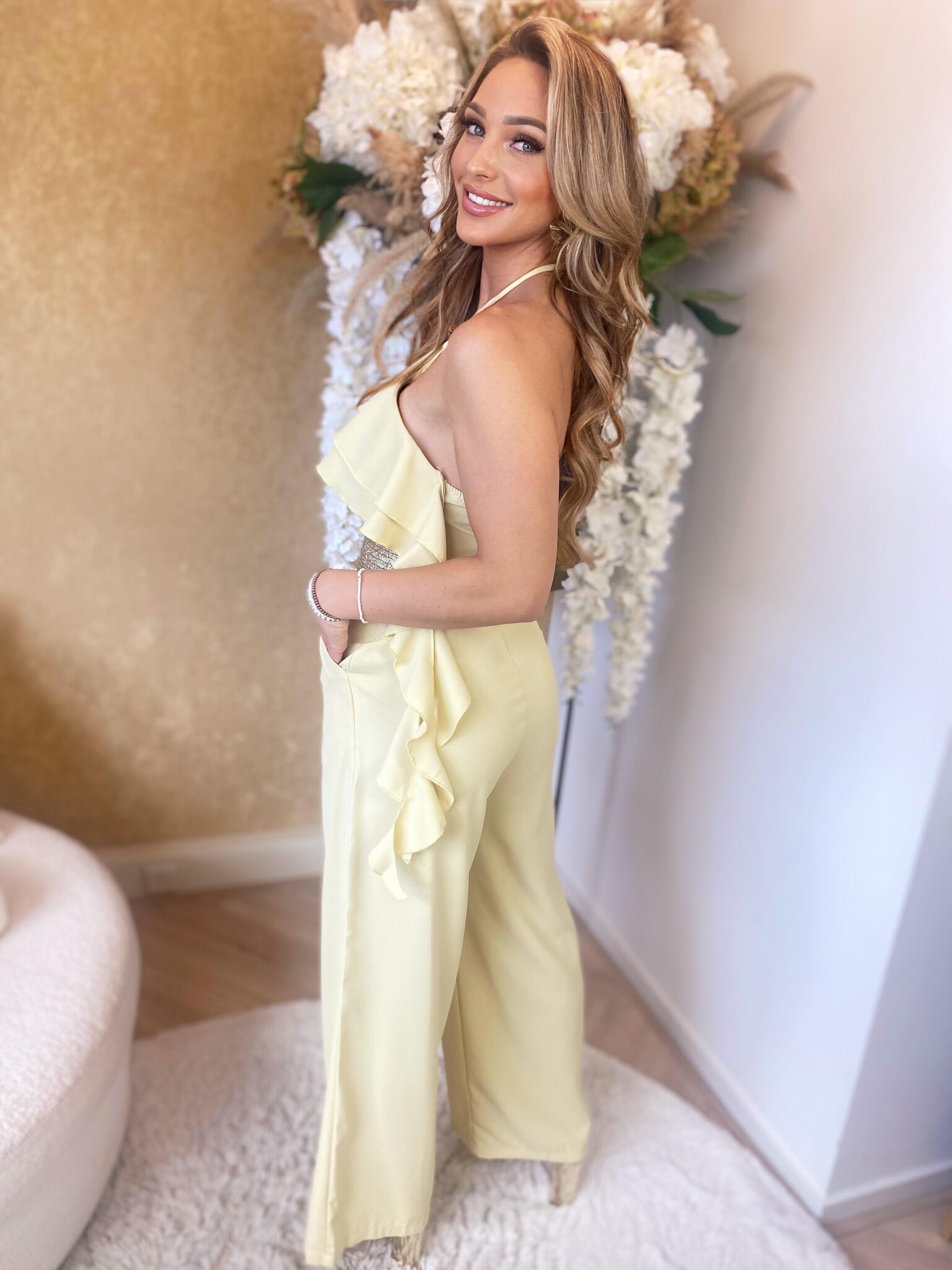 BUTTER YELLOW LOVE! Deze halter jumpsuit in de kleur butter yellow straalt elegantie uit. Perfect voor een speciale gelegenheid. Met de juiste sieraden en hakken ben jij helemaal party ready.... Lees meer