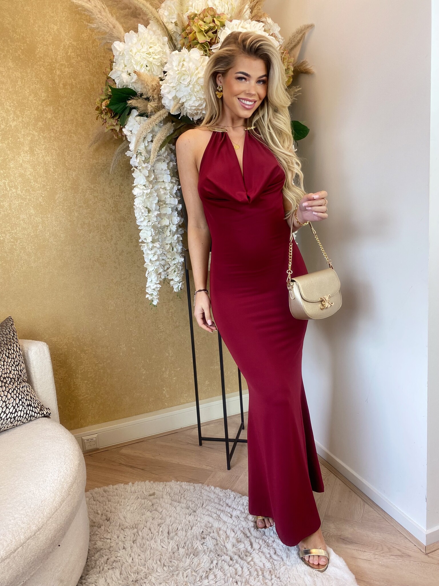 JAIMY Selena travel golden detail maxi dress bordeaux