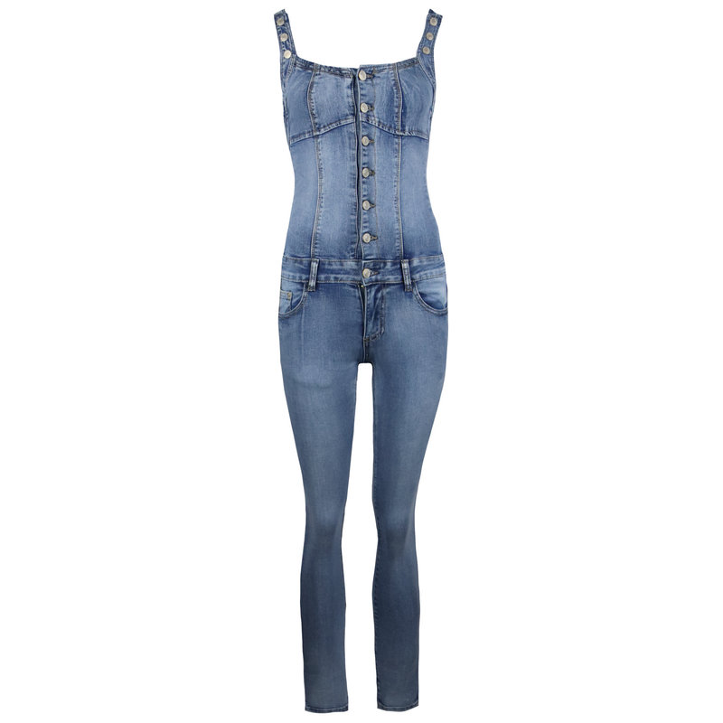 OPEN BACK! De Selene jumpsuit is gemaakt van heerlijk stretchy denim. Aan de voorkant gaat hij dicht met knoopjes en de achterkant heeft een kruisend detail met open rug.... Lees meer