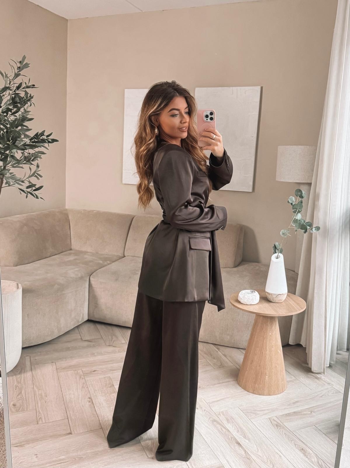 CLASSY! Deze elegante satijnen pantalon zit niet alleen heerlijk, maar straalt pure klasse uit. Met zijn vloeiende pasvorm en subtiele glans is hij perfect voor zowel een stijlvolle werkdag als een avondje uit. Combineer 'm met de bijpassende blazer.... Lees meer