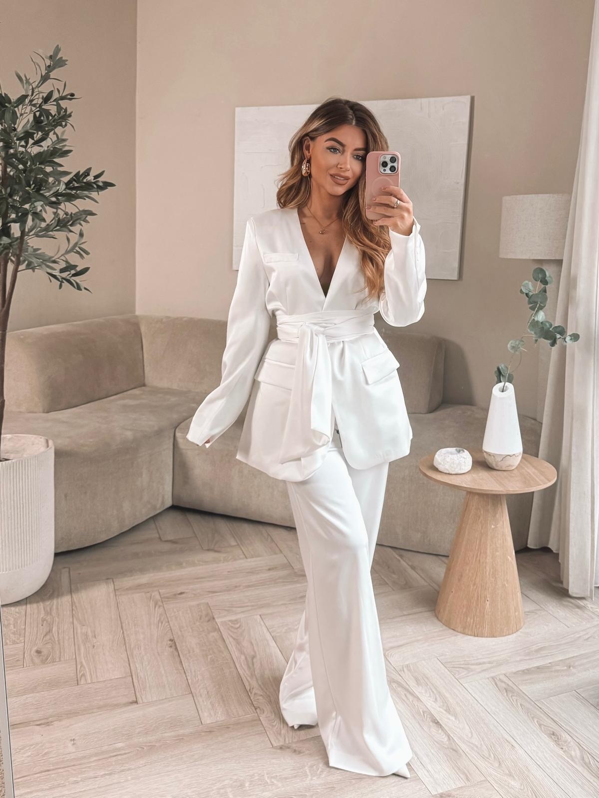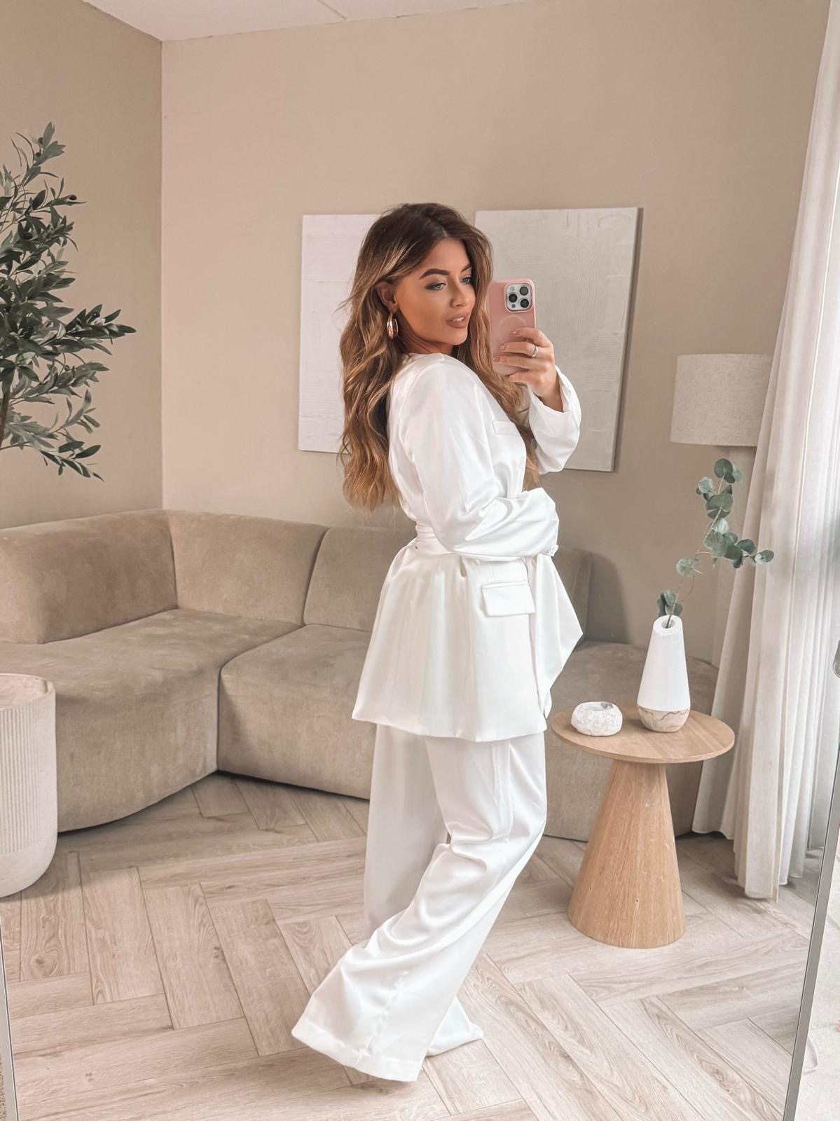 CLASSY! Deze elegante satijnen pantalon zit niet alleen heerlijk, maar straalt pure klasse uit. Met zijn vloeiende pasvorm en subtiele glans is hij perfect voor zowel een stijlvolle werkdag als een avondje uit. Combineer 'm met de bijpassende blazer.... Lees meer
