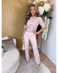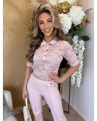 JAIMY Sharlene top lace short sleeve with gold buttons and collar soft blush