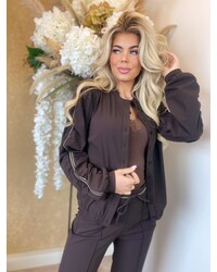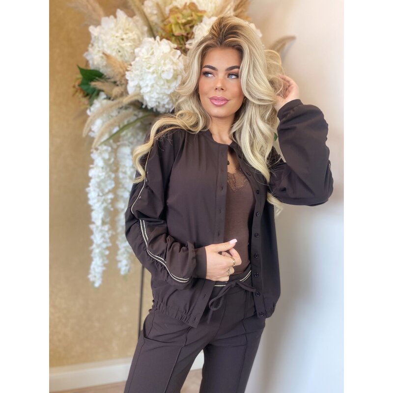 Sharlene travel flared pants with gold rib belt brown