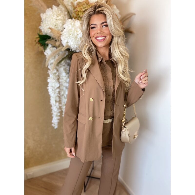 JAIMY Sharlene travel gold button blazer camel