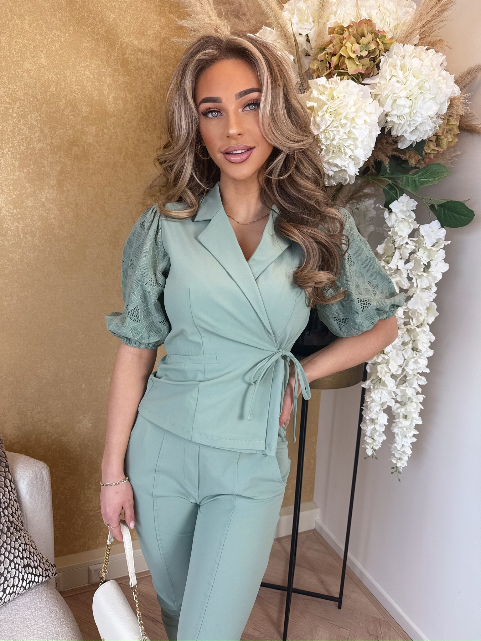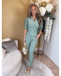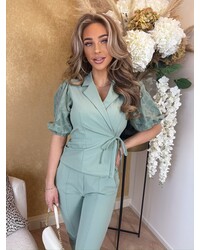 JAIMY Sharlene travel wear blazer short sleeveless cross body with lace sage green