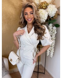 Sharlene travel wear blazer short sleeves cross body with satin fabric kit