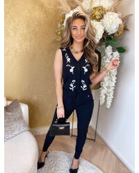 Sharlene travel wear blouse cut sleeveless with embroidery and cord black