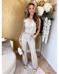 Sharlene travel wear blouse cut sleeveless with embroidery and cord beige