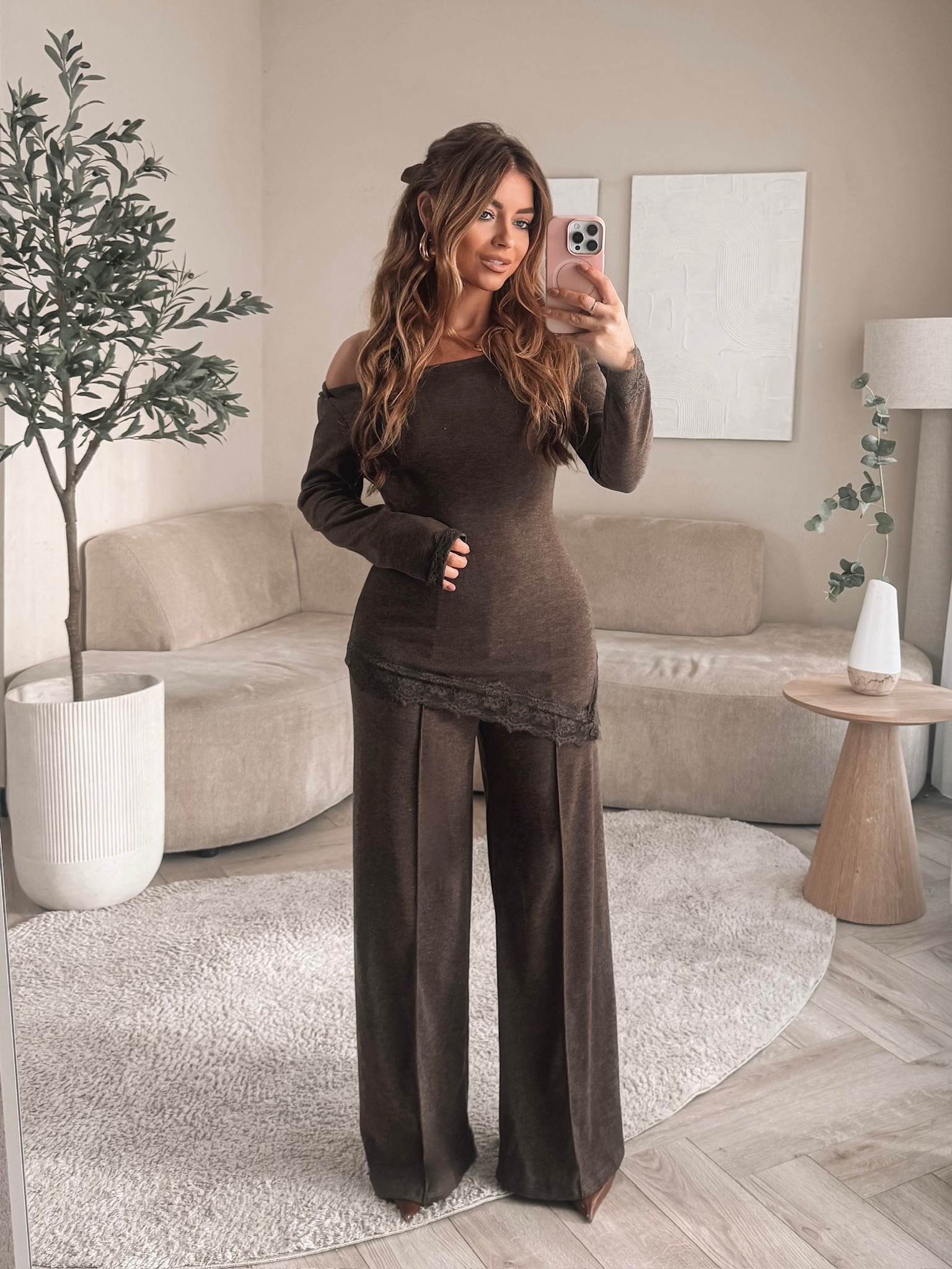 JAIMY Skye lace detail comfy set choco