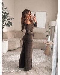Elegante comfy set van zachte, stretchy knitwear stof met off-shoulder top en verfijnd lace detail. De flared broek zorgt voor een vrouwelijke, comfortabele en stijlvolle look.... Lees meer