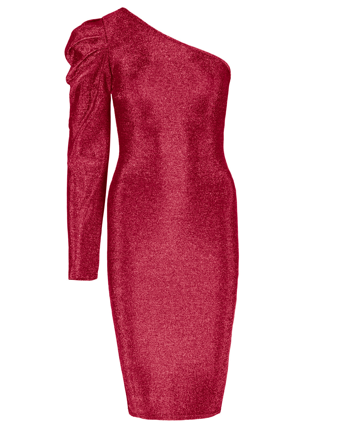 PARTY READY! De puff sleeve one shoulder gecombineerd met het prachtige lurex glittertje maakt dit de perfecte party dress. Combineer met high heels of stoere boots.... Lees meer
