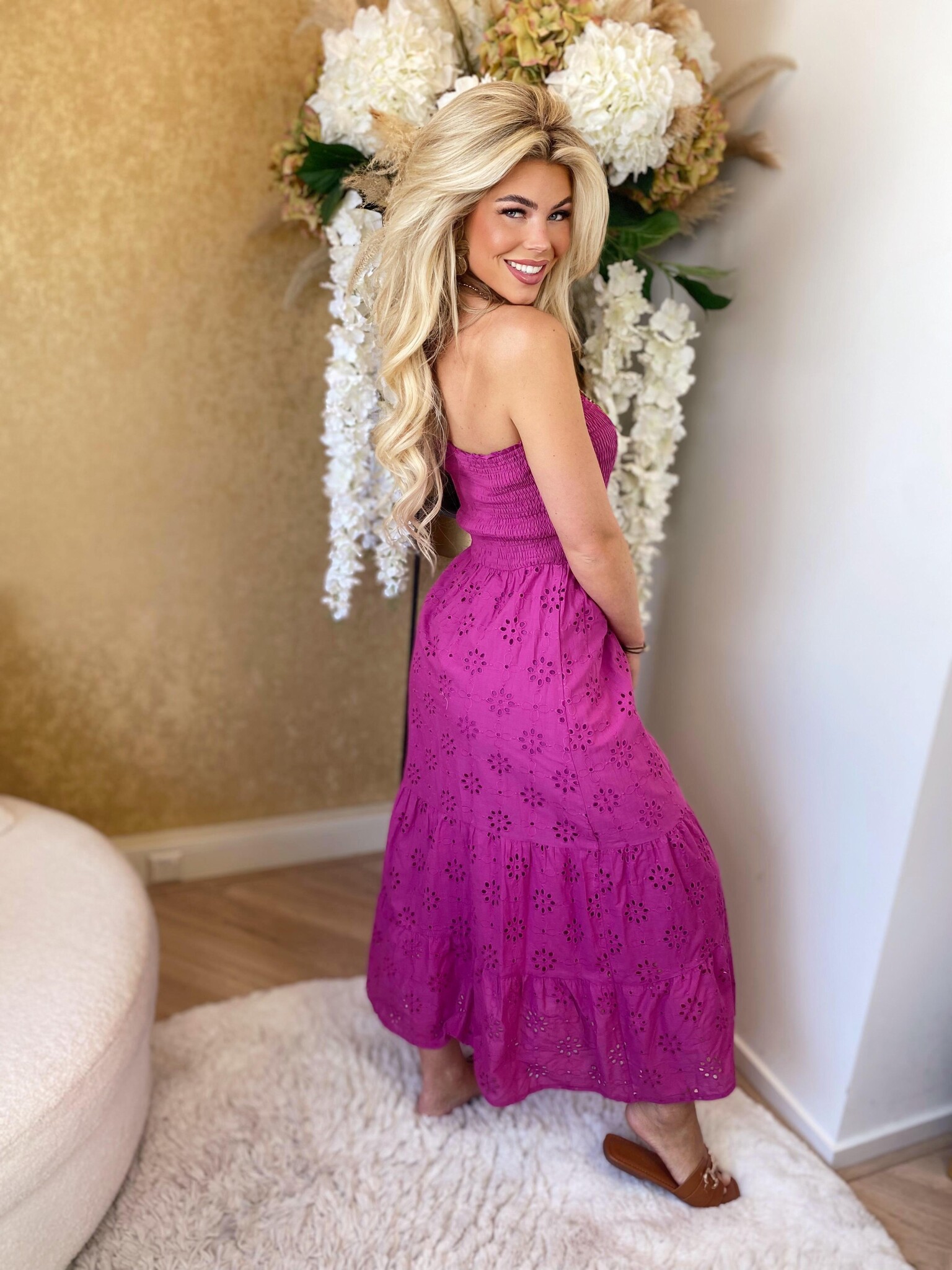 SUMMER MUSTHAVE! Deze heerlijke broderie maxi jurk is perfect voor de zomer. De jurk heeft een strapless fit gecombineerd met maxi lengte.... Lees meer