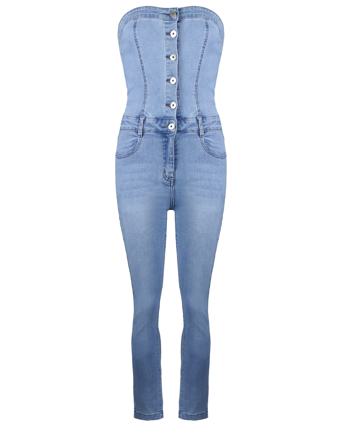 MUSTHAVE ALERT! Een veelzijdige musthave, deze strapless denim jumpsuit voegt stijl en gemak toe aan je garderobe. De jumpsuit heeft knoopjes als sluiting. Door de flatterende pasvorm is deze jumpsuit perfect voor elke gelegenheid.... Lees meer