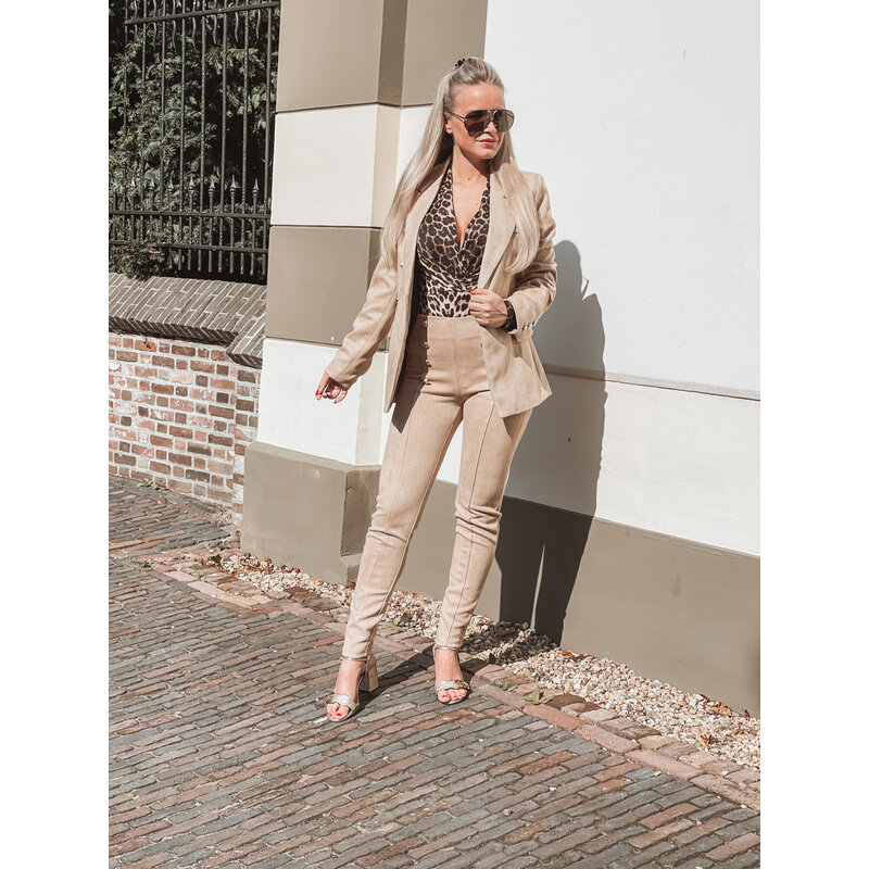 Sluiting: blinde rits op linkerheup & 1 knoopje bij de blazer