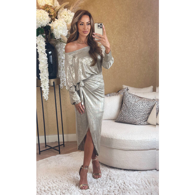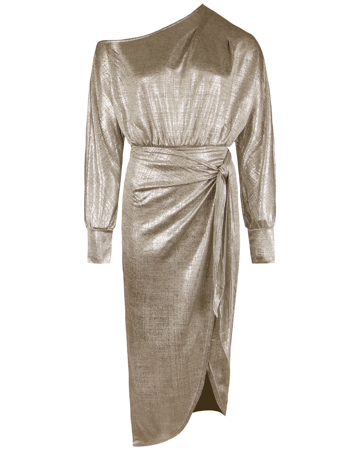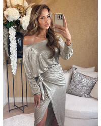 PARTY MUSTHAVE! De Talia jurk is gemaakt van een stretchy metallic stof. De jurk heeft een off shoulder fit gecombineerd met een overslag effect.... Lees meer