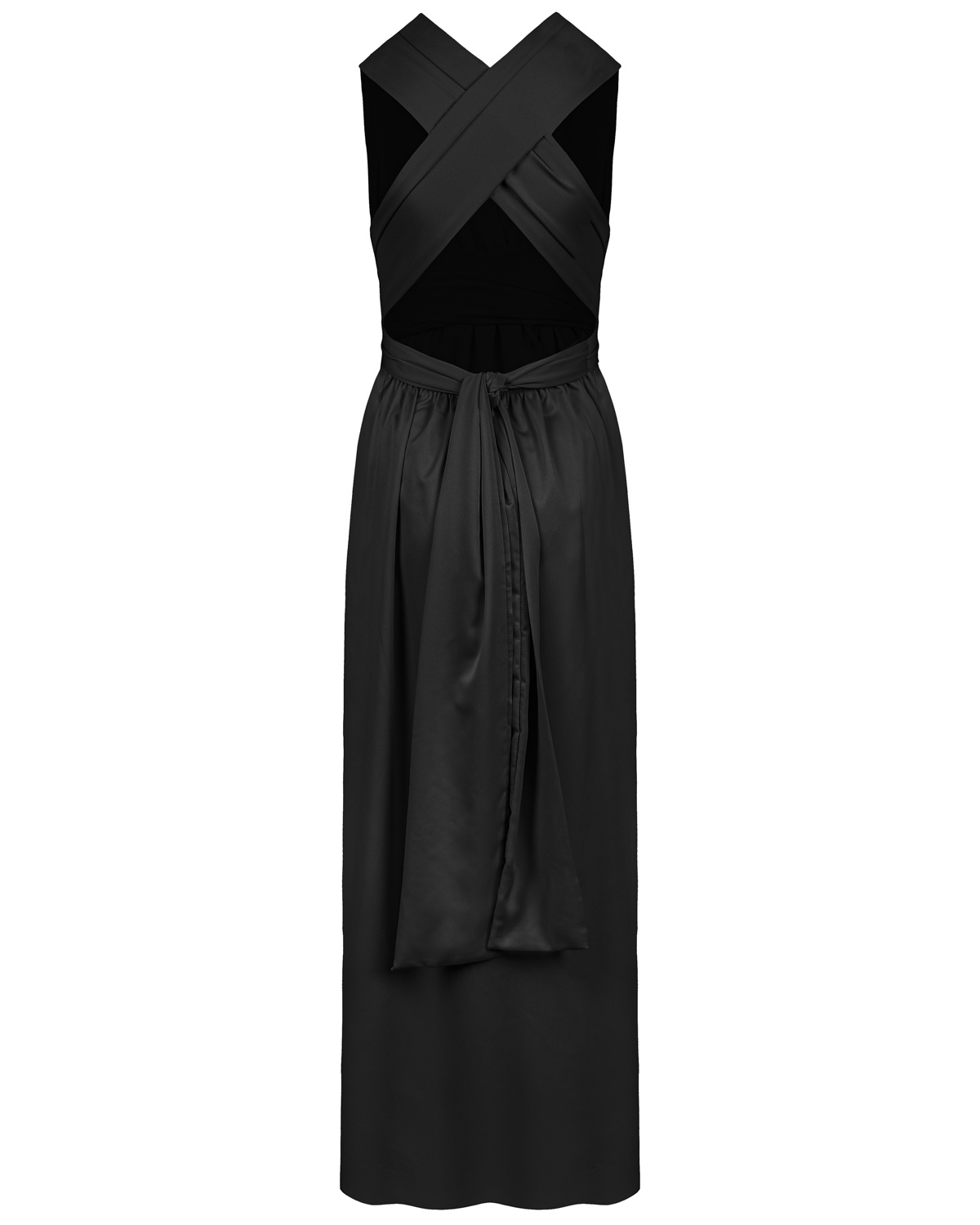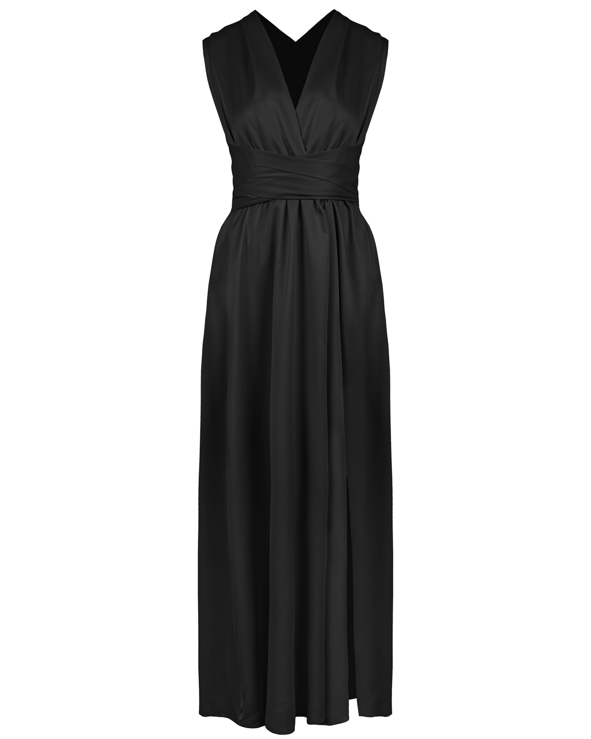 MUSTHAVE ALERT! De naam zegt het al deze nieuwe jurk kun je op verschillende manieren dragen. De jurk is van prachtige satijn look stof en heeft een split aan de voorkant.