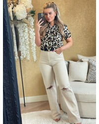 TREND ALERT! De luipaard items zijn HOT dit seizoen. Hoe mooi is deze nieuwe blouse met luipaard print en subtiele glans? De blouse heeft een strik detail in de nek gecombineerd met korte ballon mouwtjes.... Lees meer