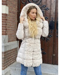 FURRY LOVE! Deze heerlijke warme jas heeft een prachtige doorlopende imitatie bontkraag. Mooi getailleerd met een ceintuur en zakken met ritssluiting. De jas heeft een capuchon en manchetten.... Lees meer