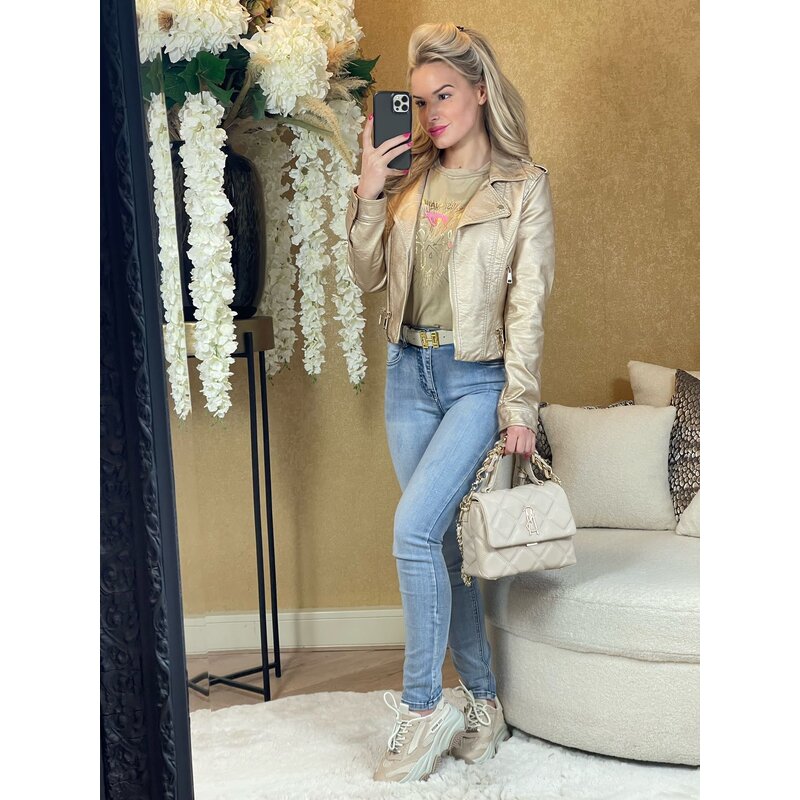 Vegas vegan biker jacket gold