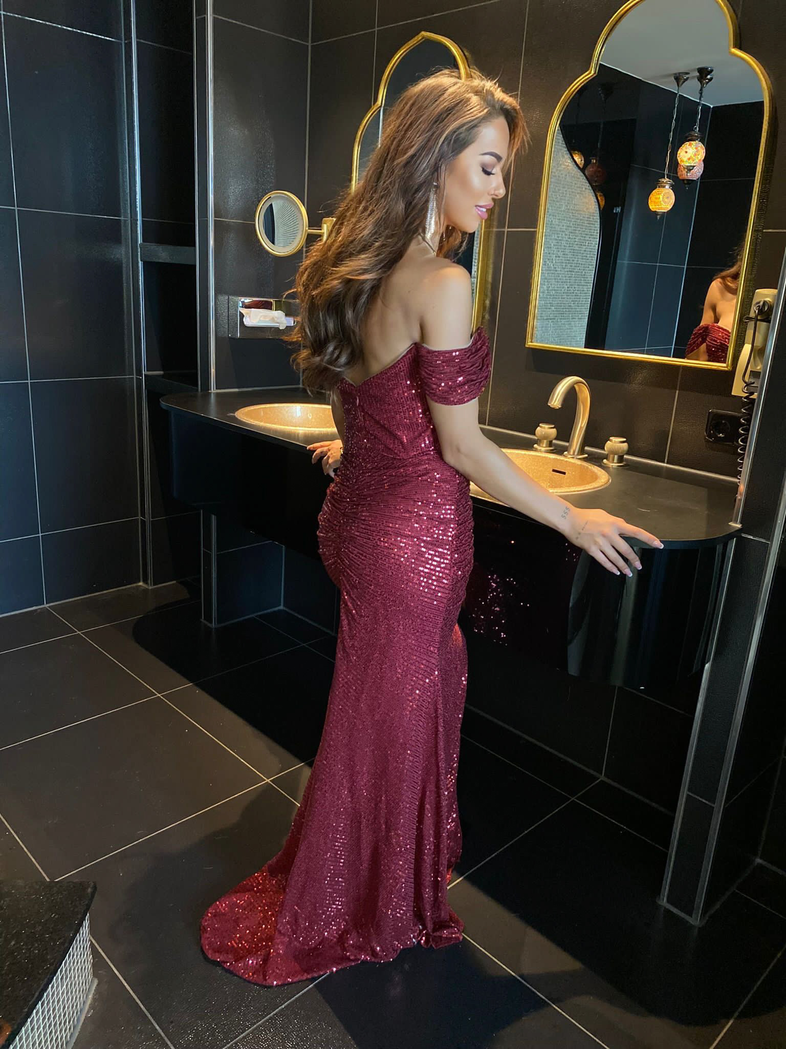 JAIMY Victoria maxi sequin dress bordeaux