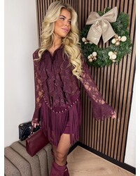JAIMY Xine velvet fringe skirt plum