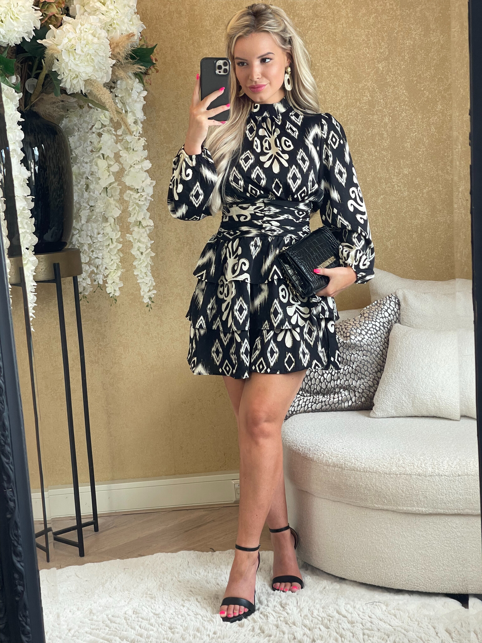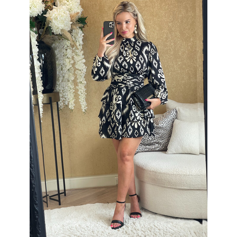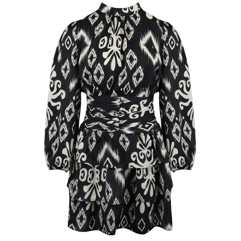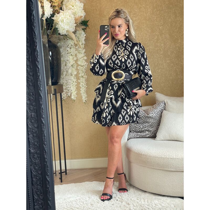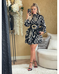 PRINT LOVE! De Zoya jurk heeft een prachtige print met golden details, WE LOVE IT! De jurk heeft een hoge hals en geplooide details in de taille wat zorgt voor een afslankend effect. Combineer de jurk met high heels of boots om de look af te maken.... Lees meer